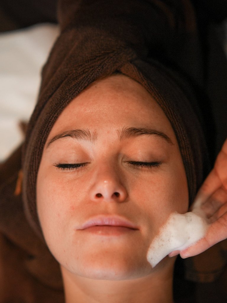 2) Exfoliation au gommage aloe vera. Les peaux mortes et impuretés sont éliminées. Vous retrouvez un grain de peau lisse et uniformisé