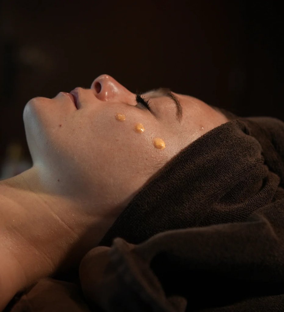 5) Massage visage, cou, nuque et décolleté au miel de massage à l'or
