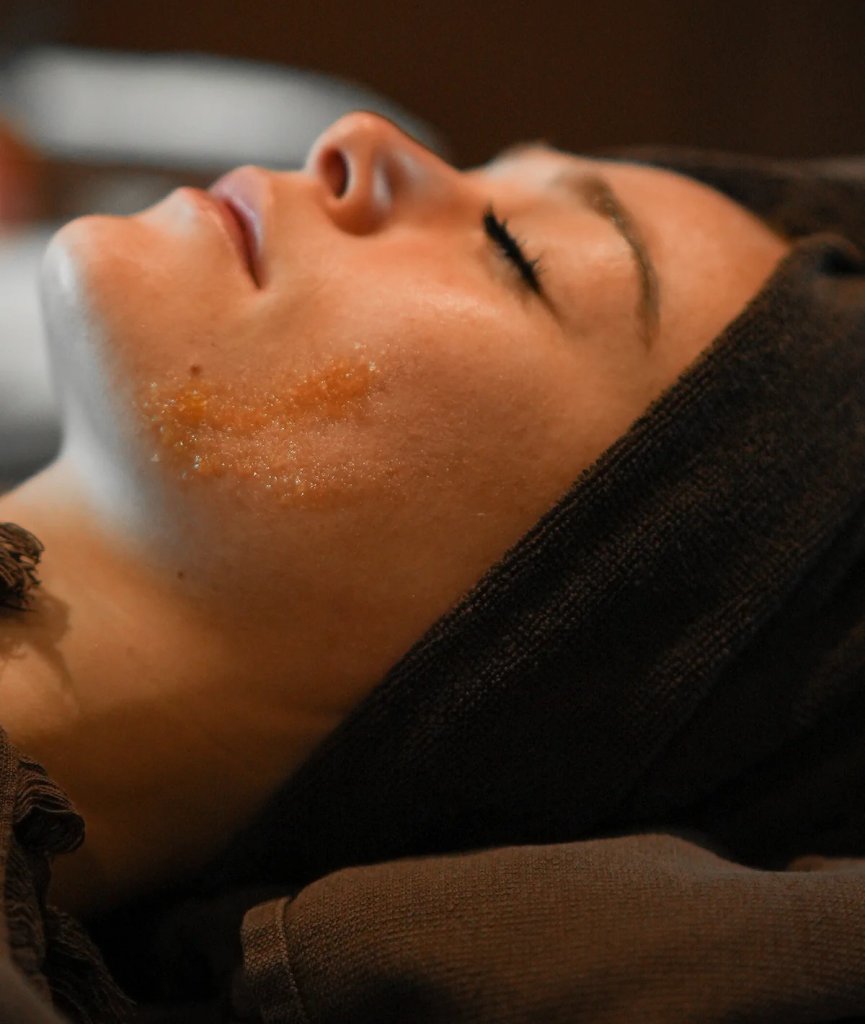 3) Exfoliation au gommage au riz. Les peaux mortes et impuretés sont éliminées. Vous retrouvez un grain de peau lisse et uniformisé